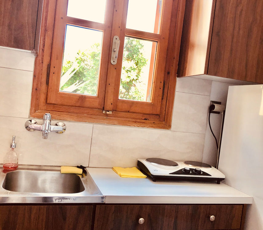 Apartment with private bedroom for 2 and a living room with sofas that open into beds, dining table and well equipped kitchen corner. Offers also TV, phone, air-condition, WiFi and a large balcony (with sunbed, table and veranda swing) with view to the neighborhood and the sea.
